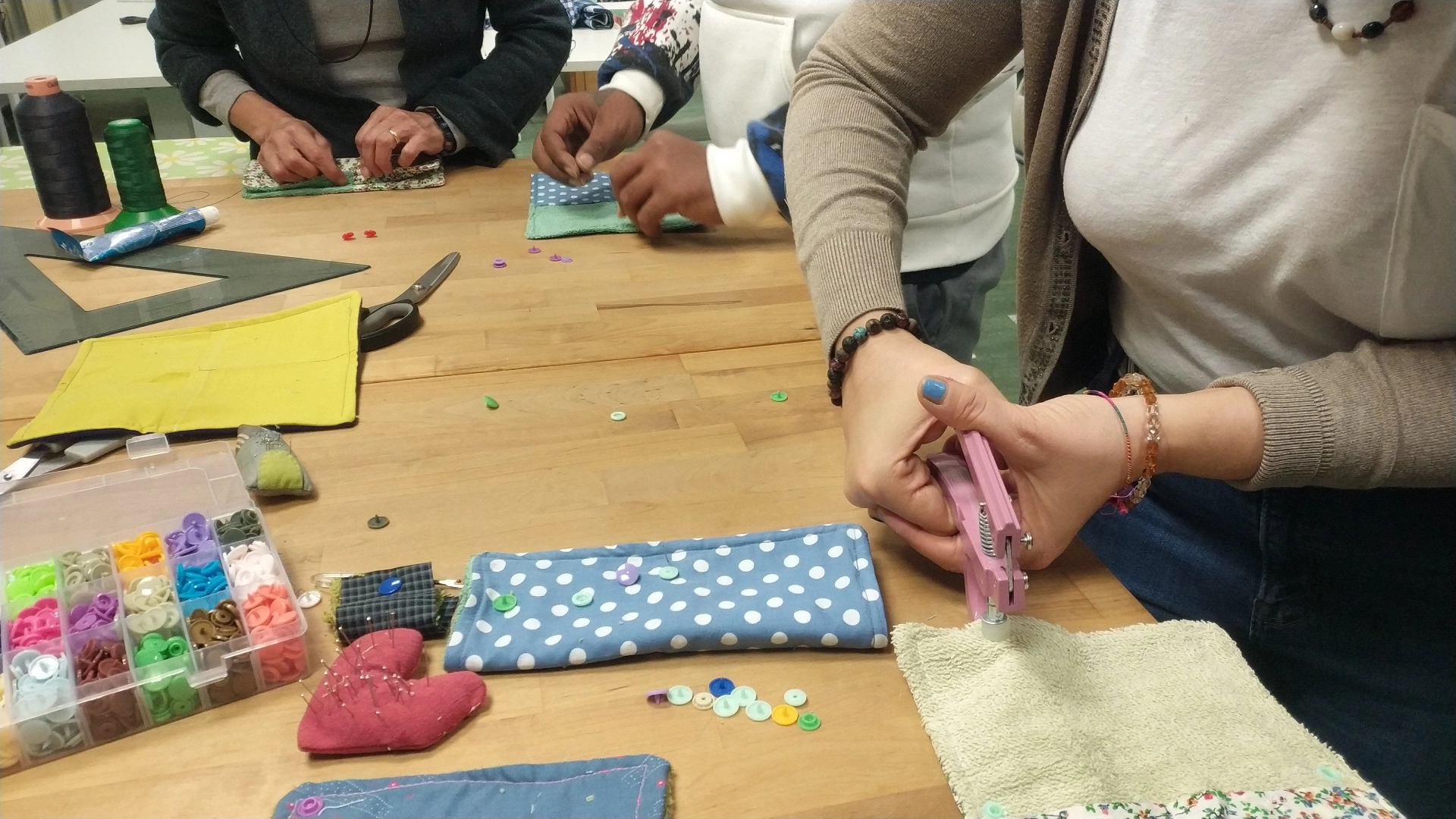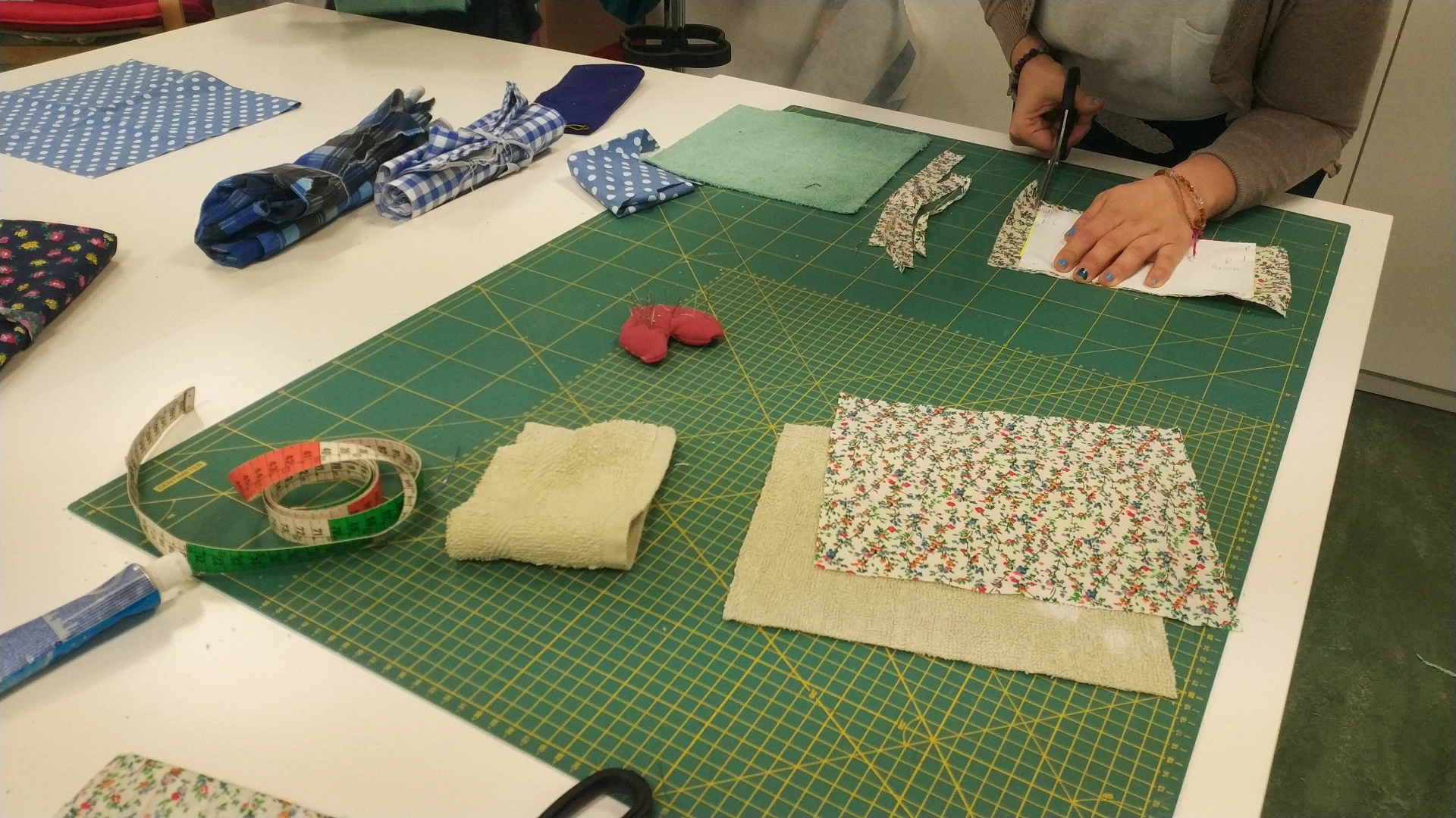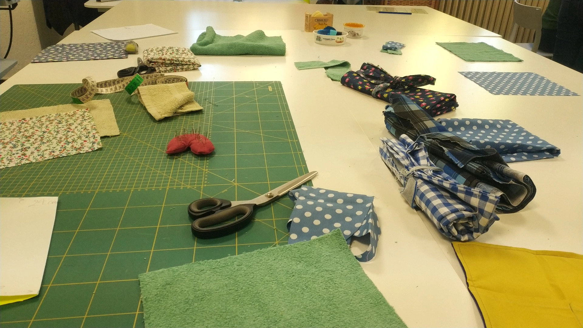 Tutti i partecipanti hanno condiviso la loro voglia di imparare e mettersi in gioco, non solo con le mani: portando un loro proprio asciugamano al quale desideravano dare una nuova vita trasformandolo, con gli strumenti messi a disposizione dal nostro laboratorio.